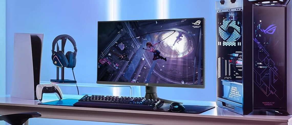 Además, el diseño del monitor se complementa con una estética moderna y agresiva, característica de la línea ROG, lo que no solo lo convierte en una opción funcional, sino también visualmente atractiva para los entusiastas de los juegos. La construcción robusta asegura durabilidad, mientras que la base proporciona una buena estabilidad, evitando deslizamientos accidentales que podrían interrumpir la experiencia de juego.