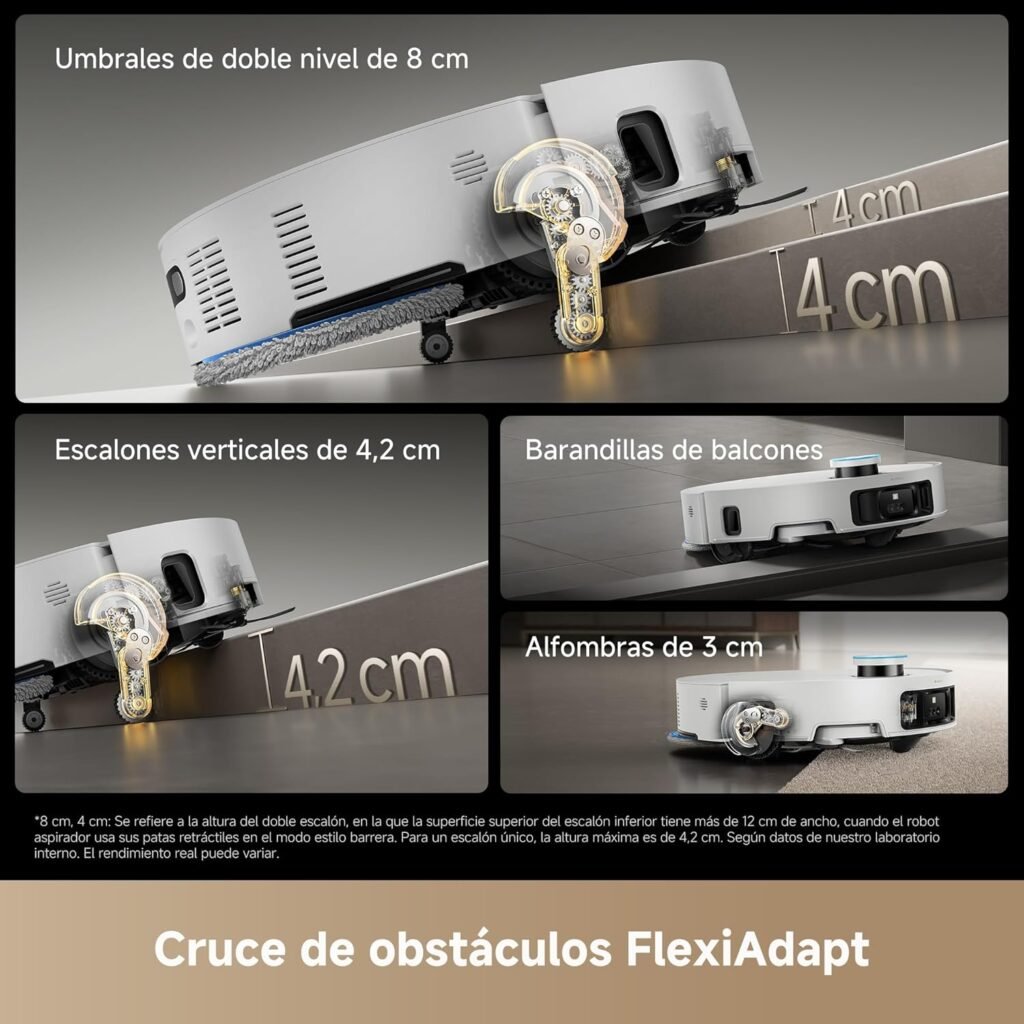 - [Supera Obstáculos (8 cm)] Ya sean escalones de hasta 8 cm, escalones verticales de 4,2 cm, barandillas de balcones y va…