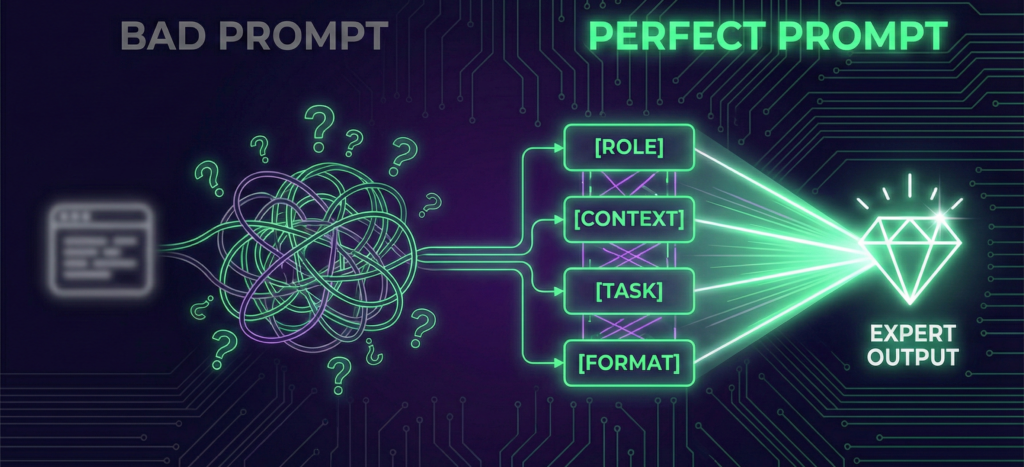 Si le escribes «Escribe un correo para un cliente», el resultado será genérico, robótico y aburrido. La IA no es adivina: no sabe qué vendes, quién es tu cliente ni si tu tono es serio o divertido.