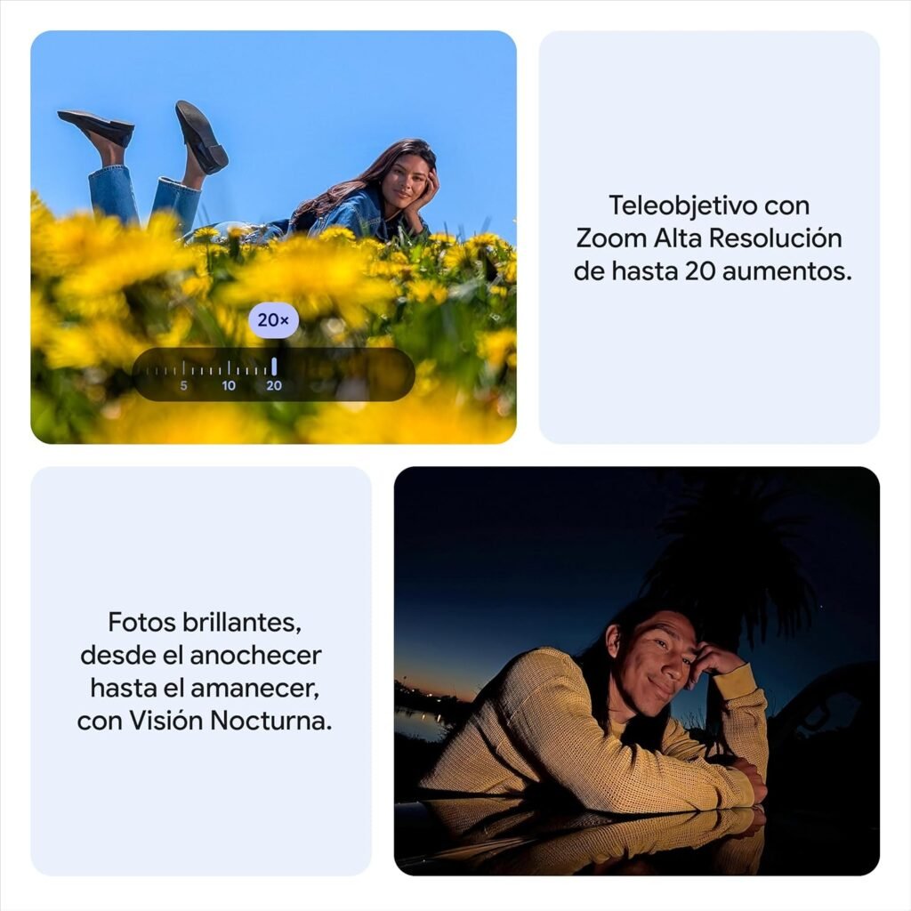Sensor principal de 50 MP y ultra gran angular de 12 MP. Donde realmente brilla es en el procesado de imagen con IA, logrando resultados espectaculares en retratos y escenas con poca luz.